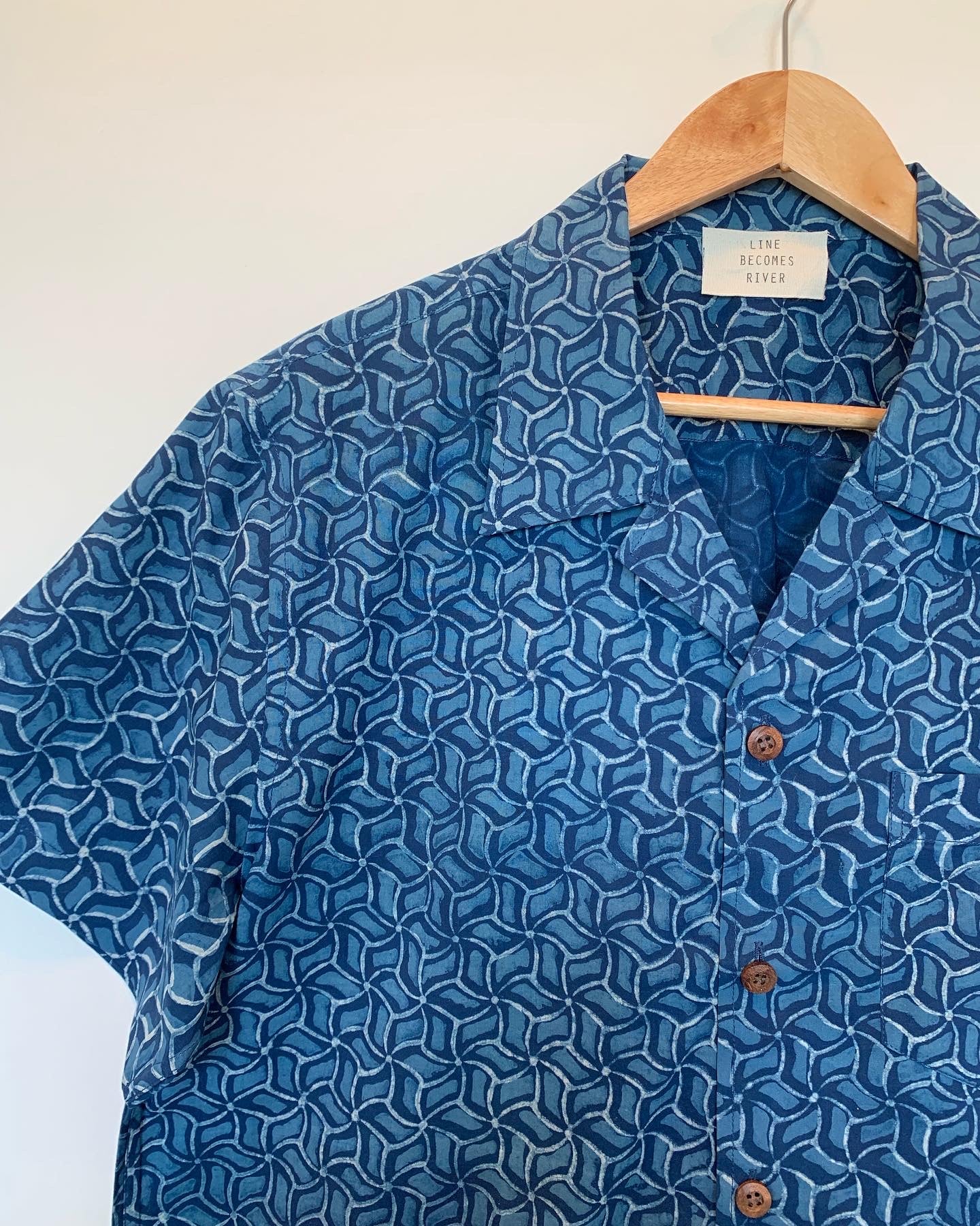 Hand block printed organic Indigo 🌀🌿🪡🧵 on organic cotton. Ethically produced.